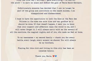 从我抵达的第一天起,我就付出了一切——在场上和场下——只为赢得自己的位置,守护巴黎圣日耳曼的球门。