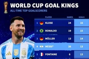 世界杯历史射手榜: